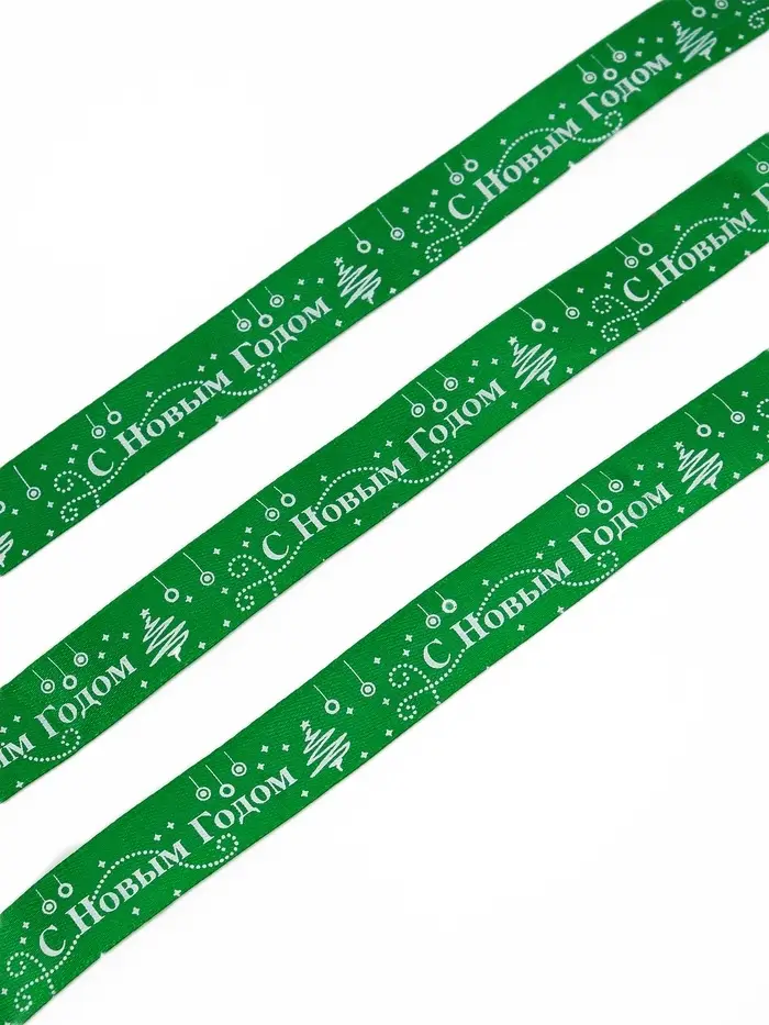 Лента атласная «С Новым годом!», зеленая, 2 см × 5 м