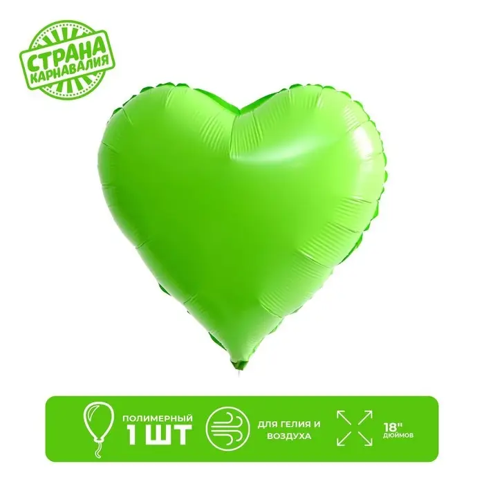 Шары воздушные полимерные 18" "Сердце неон", цвет зеленый