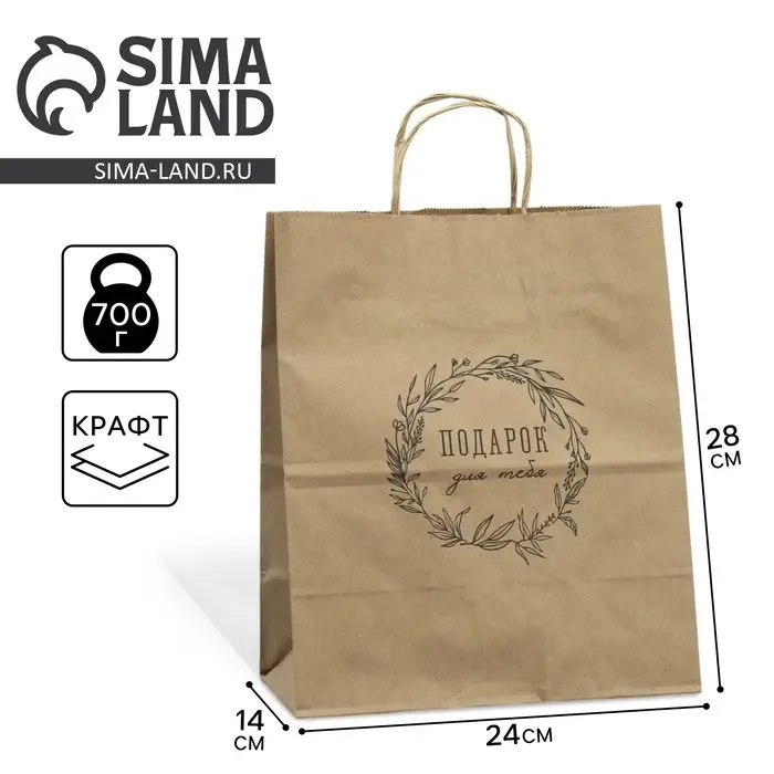 Пакет подарочный крафтовый, упаковка, «Подарок для тебя», 24 х 28 х 14 см