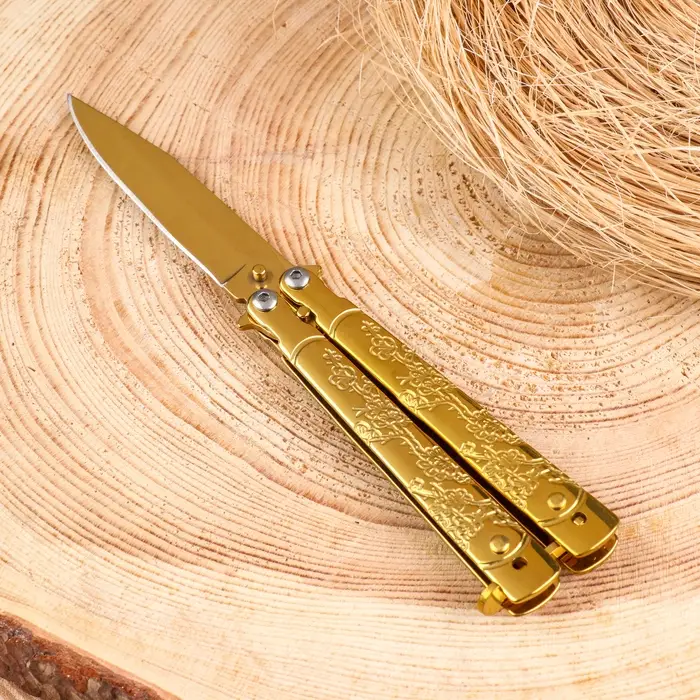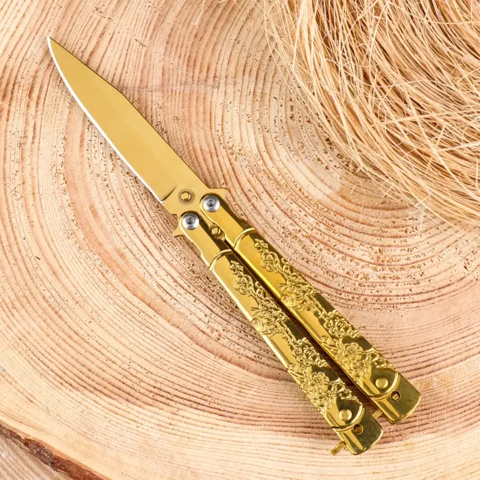 Нож-бабочка "Золотой" 17см, клинок 74мм/2мм