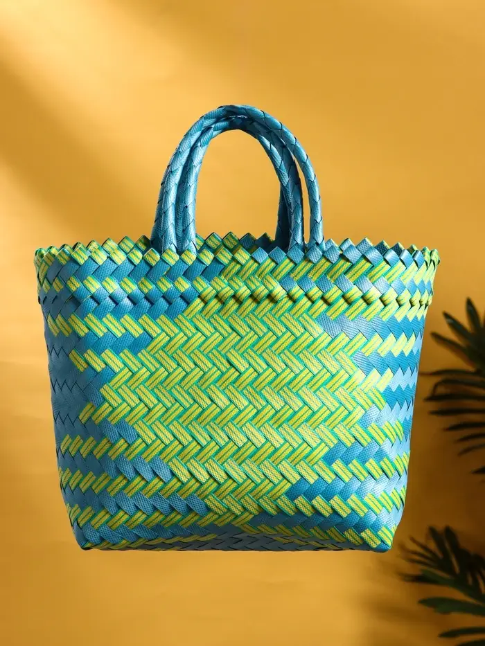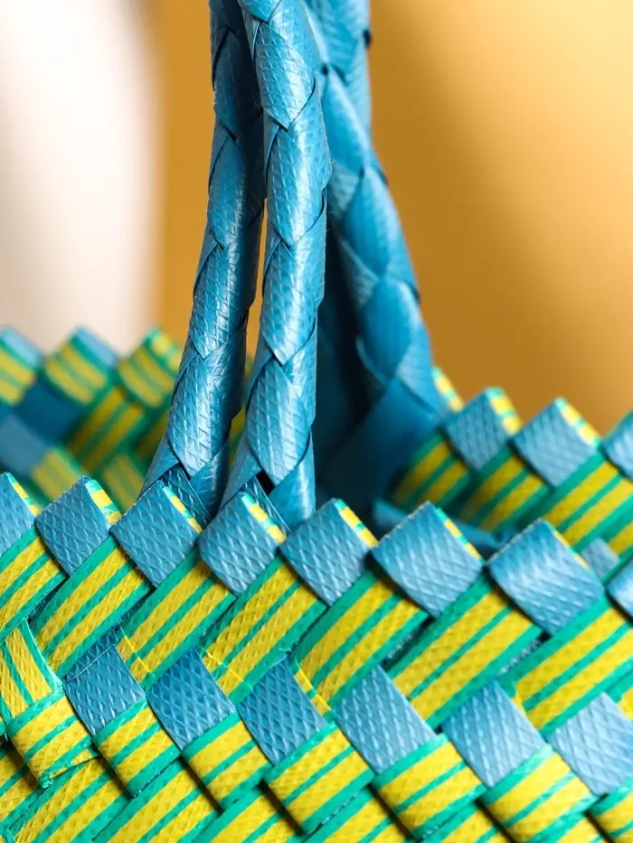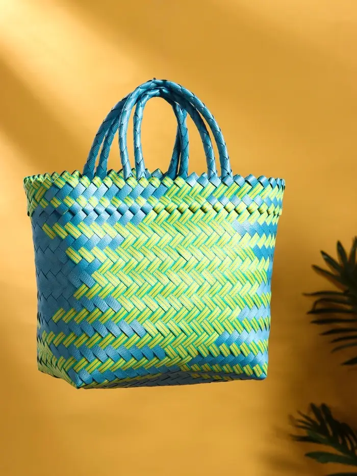 Сумка плетёная пластиковая 30х10х33 см, цв. сине-жёлтый