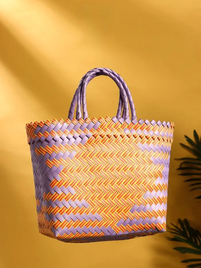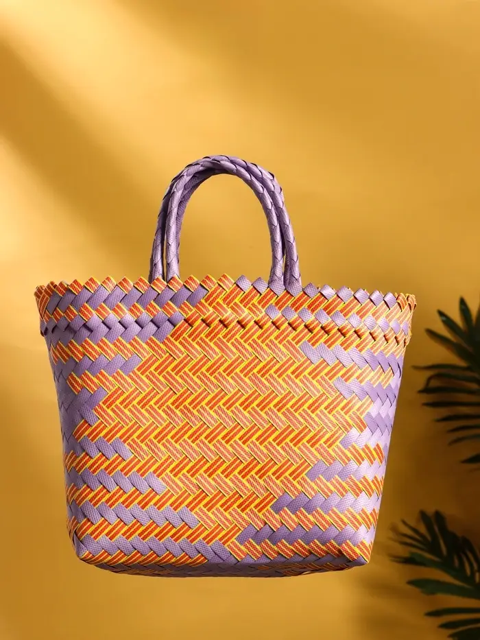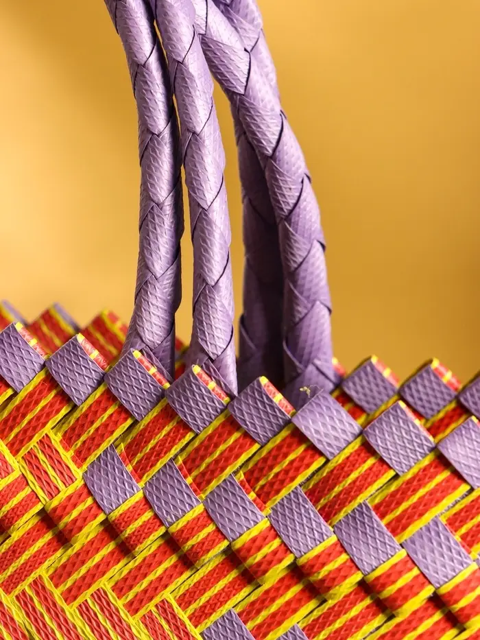 Сумка плетёная пластиковая 20х10х30 см, цв. сиренево-жёлтый