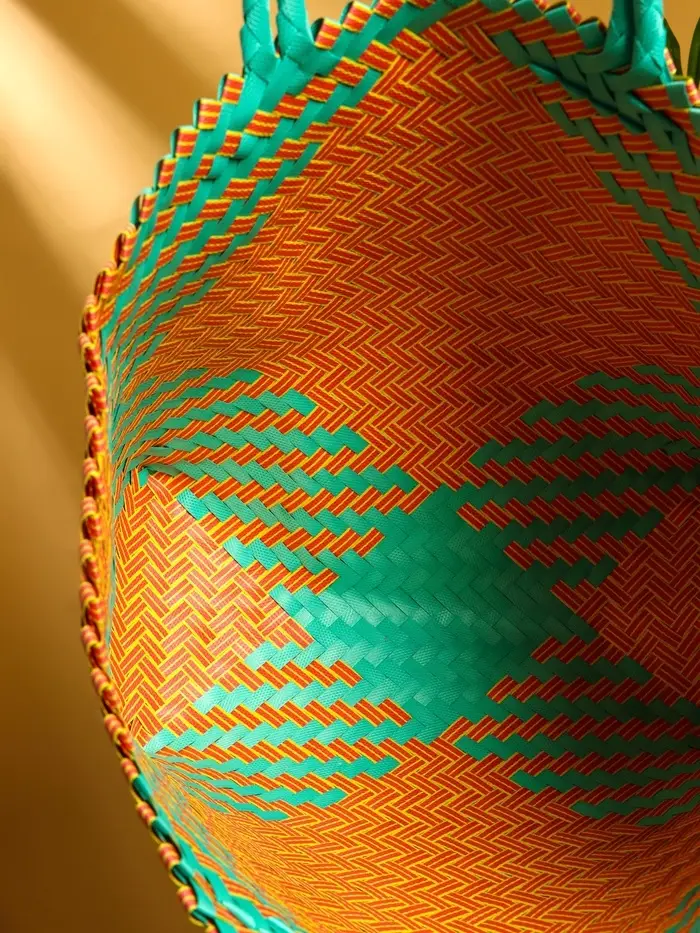 Сумка плетёная, 30×15×35 см, пластик, бирюзовый-жёлтая