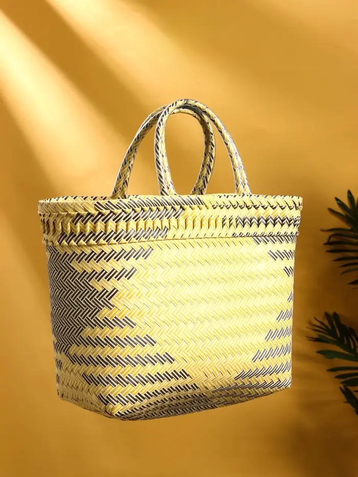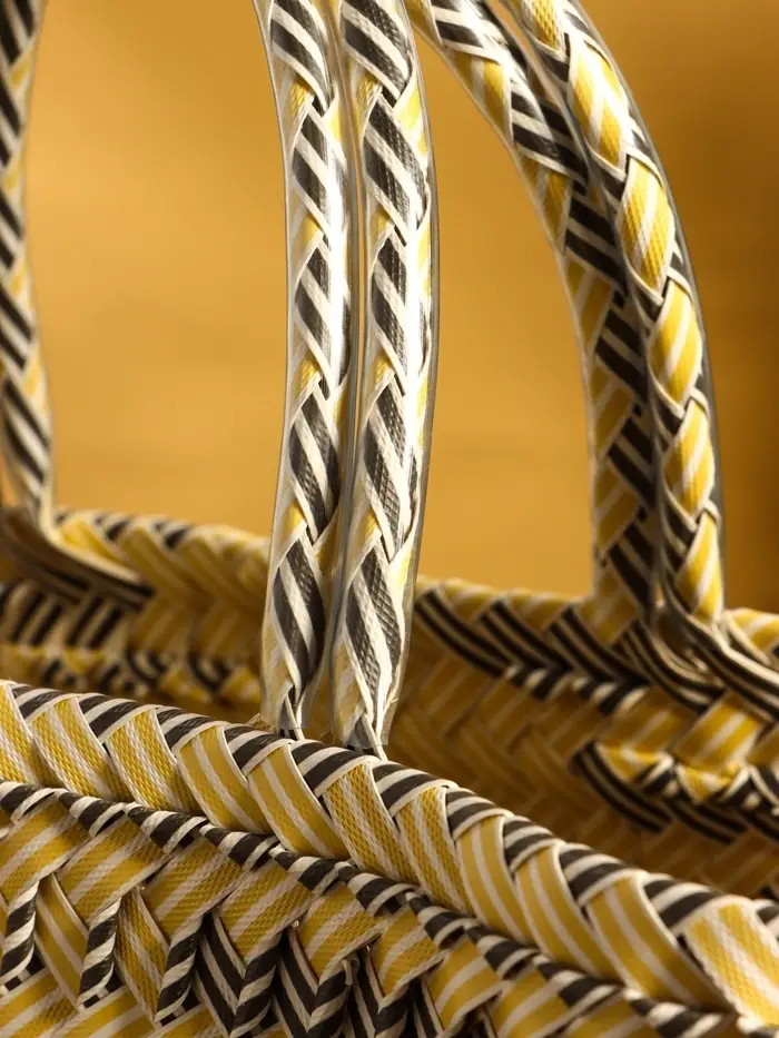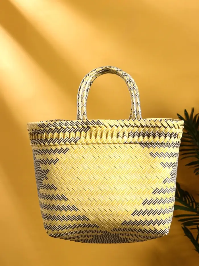 Сумка плетёная пластиковая 30х15х35 см, цв. чёрный, бежевый, белый