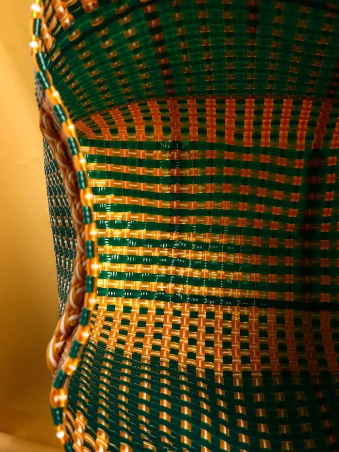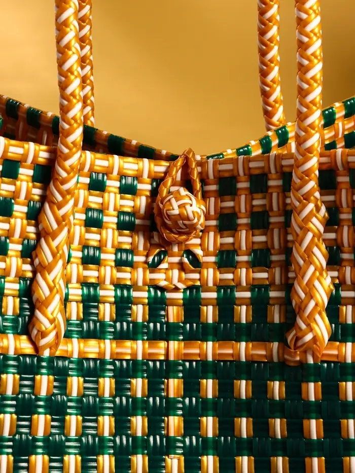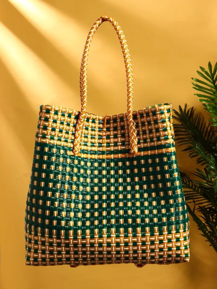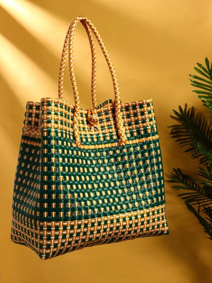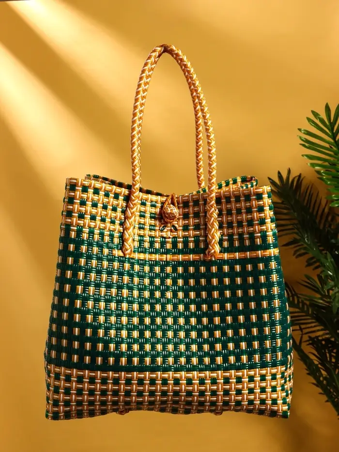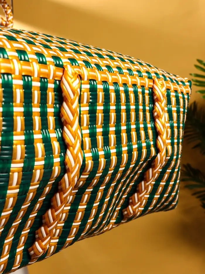 Сумка плетёная пластиковая 40х20х55 см, цв. зелёно-бежевый