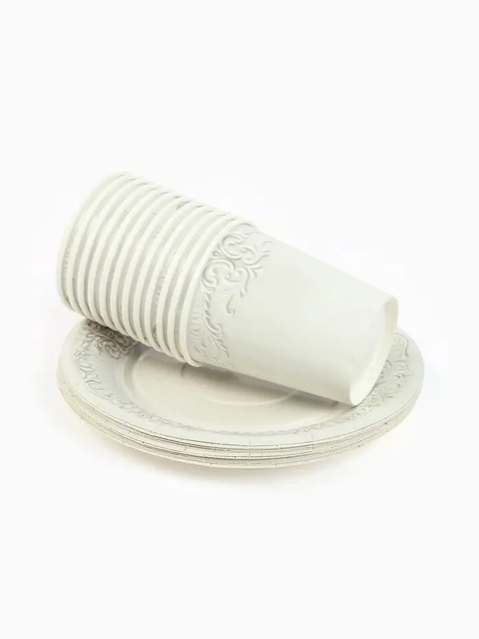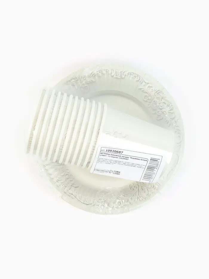 МП Набор бумажной посуды "Керамика белый, узоры", 12 персон
