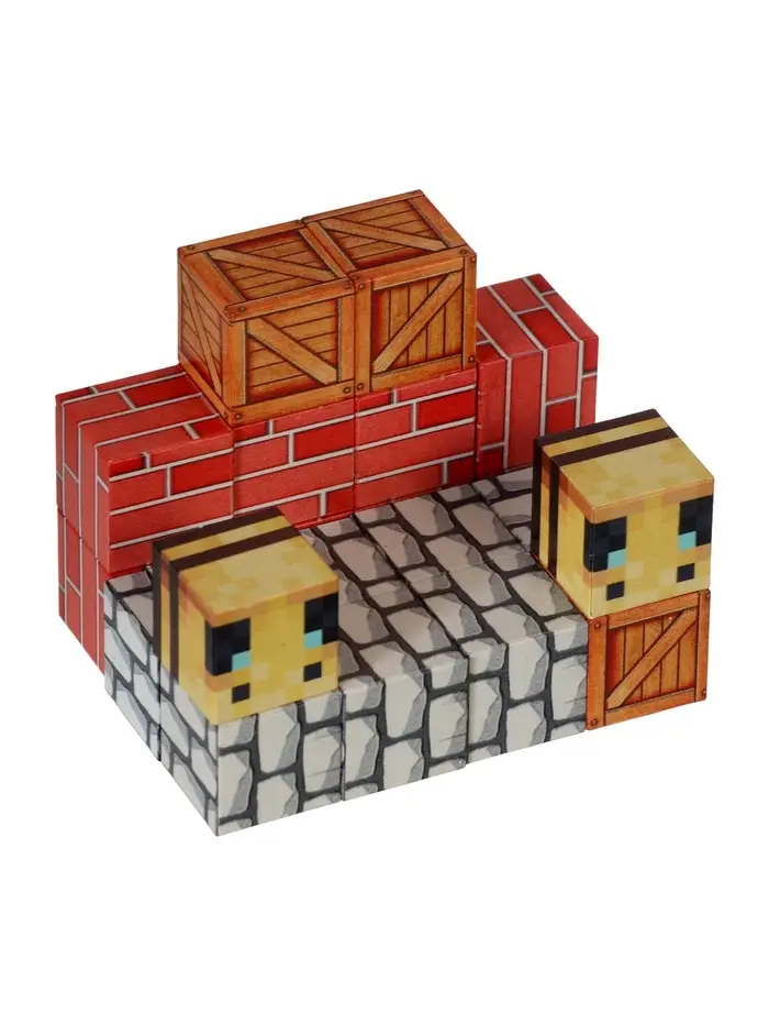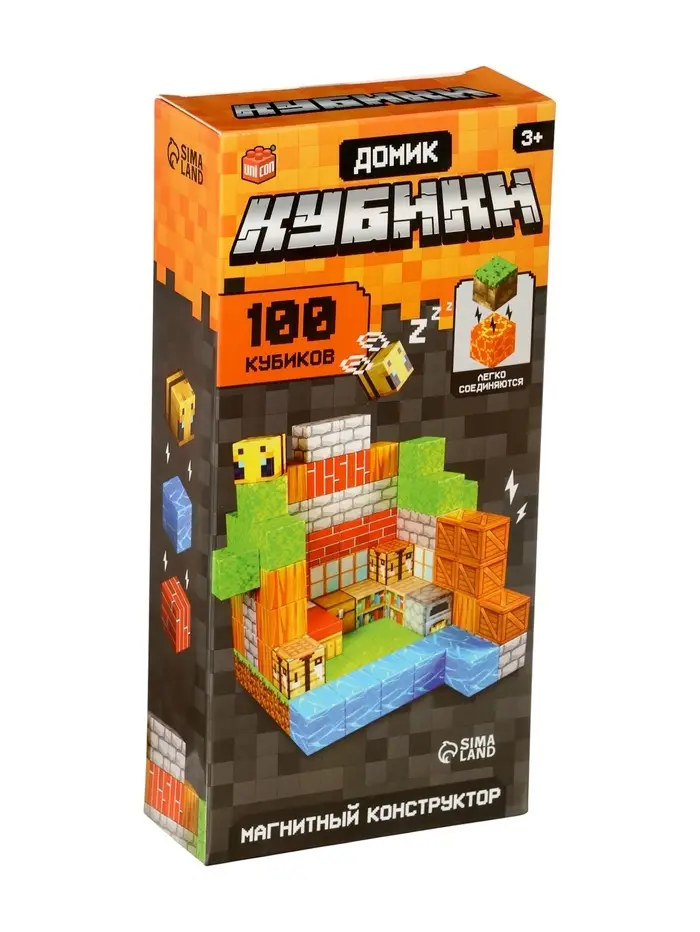 - Стиль кубических миров: конструктор развивает креативность в знакомом визуальном формате. Дети с лёгкостью переносят игровой опыт в реальность, создавая и улучшая свои постройки.