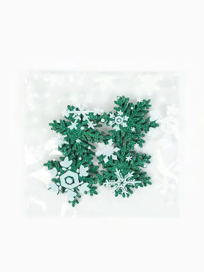 Снежинки зелёные, на клеевой основе, 3 × 3 см (набор 12 шт)
