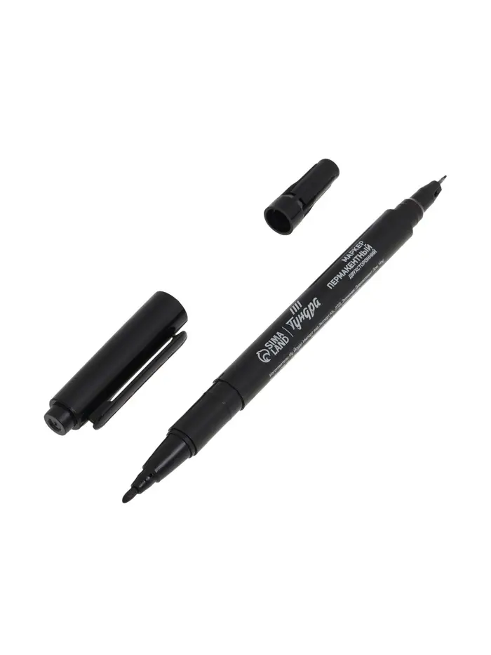 Маркер перманентный ТУНДРА, двухсторонний, черный, 1-1.5 мм, 10 шт.