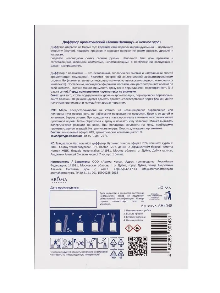 Диффузор ароматический "Снежное утро" 50 мл (открытка)
