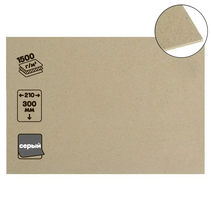 Картон переплётный (обложечный) 2.5 мм, 21 х 30 см, 1500 г/м2, серый