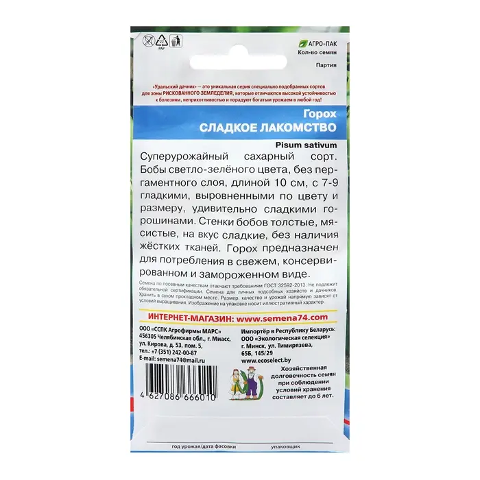 Семена Горох "Артемка" среднеранний, овощной, низкорослый, сладкий, 5 г