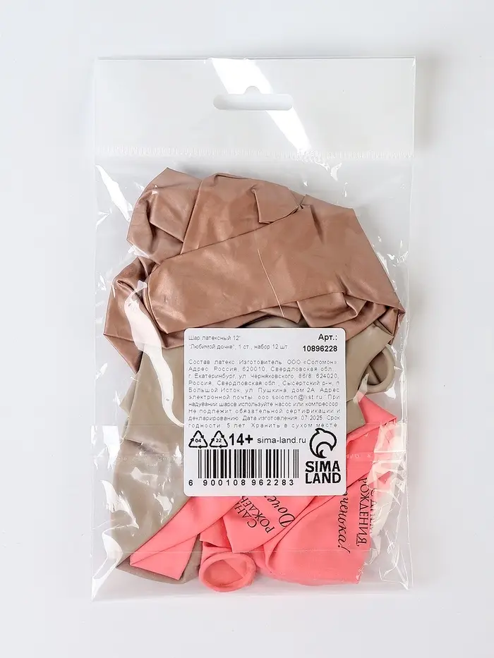 Шар воздушный 12" "Любимой дочке", 1 ст., набор 12 шт, МИКС