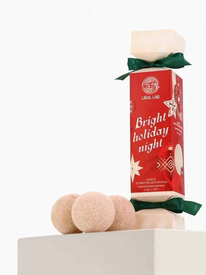 Бомбочки для ванны Bright holiday night, набор 3 шт х 40 г, аромат ванильные мечты, URAL LAB