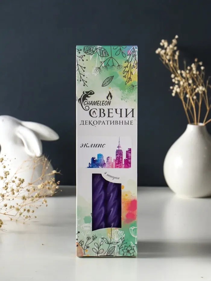 Свечи витые ароматизированные 1,9х24 см (набор 4 шт) 40 гр, 8 ч, эклипс