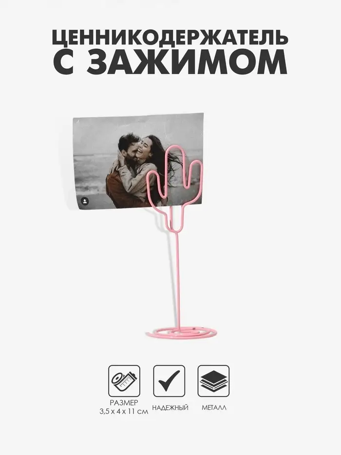 Подставка под ценник, фото «Кактус», с зажимом, 3.5×4×11 см, розовый