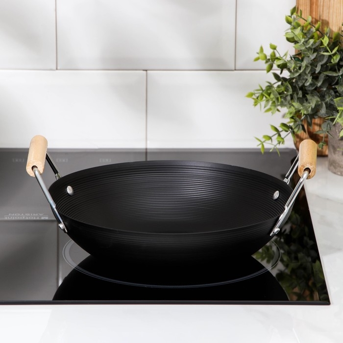 Сковорода-WOK Доляна «Жаклин», d=24,5 см, деревянные ручки, цвет чёрный