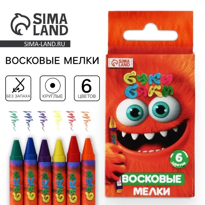 Мелки восковые 6 цветов в коробке «БукиБяки»