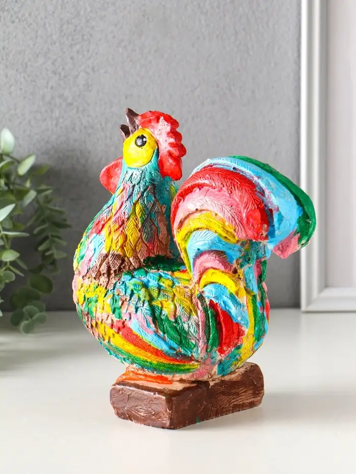 - Узнаваемый образ птицы: Фигурка петуха — это сильный талисман в многих культурах. Он символизирует рассвет, новый старт и активность. Такой образ мотивирует к действию и привлекает энергию процветания в дом.