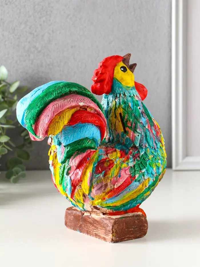 Практичная и красивая вещь: Копилка в виде петуха выполняет две функции — помогает собирать деньги и создает уютную атмосферу. Она станет ярким штрихом в интерьере и заметным напоминанием о ваших финансовых планах. Такой подарок оценят и взрослые, и дети — он несет в себе идею заботы о будущем.