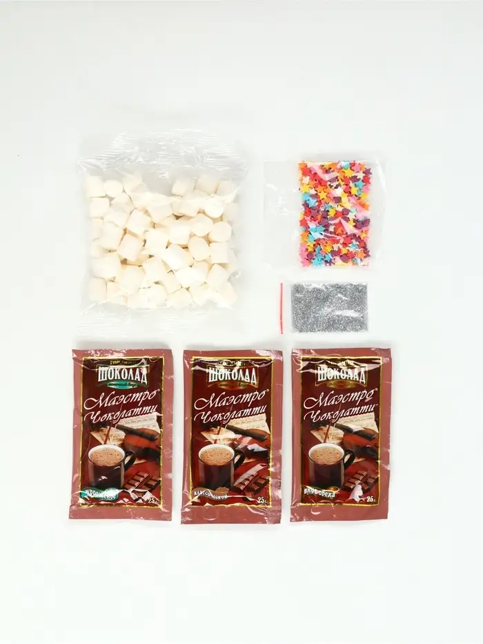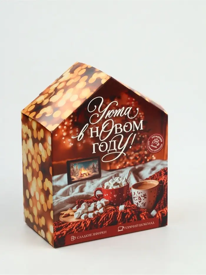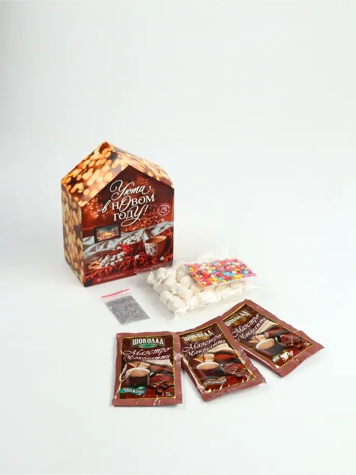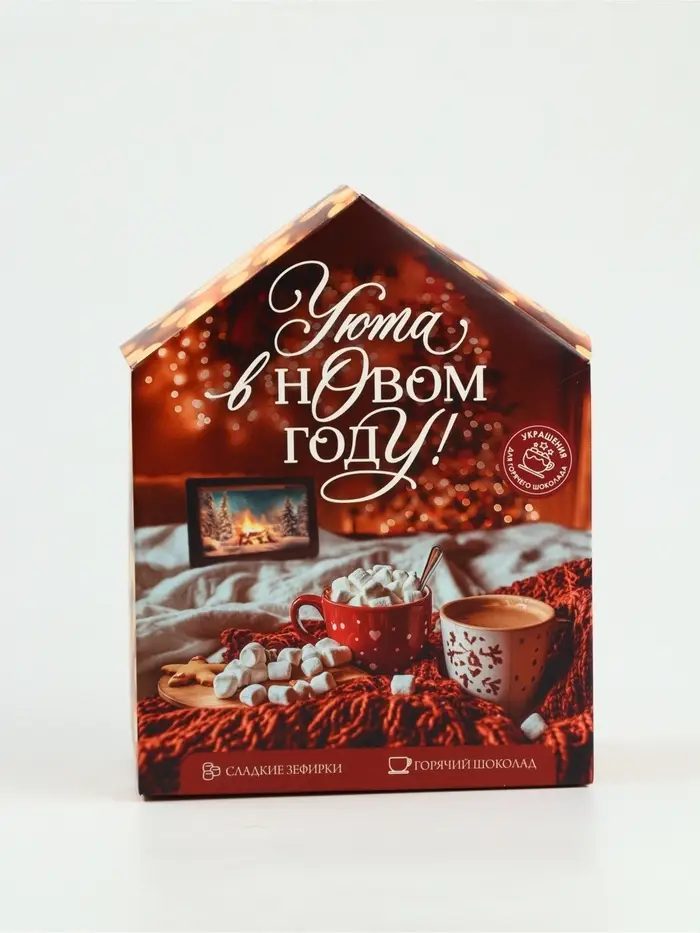 Набор с горячим шоколадом 3 шт, маршмеллоу и декором "Уюта в новом году"