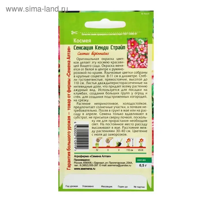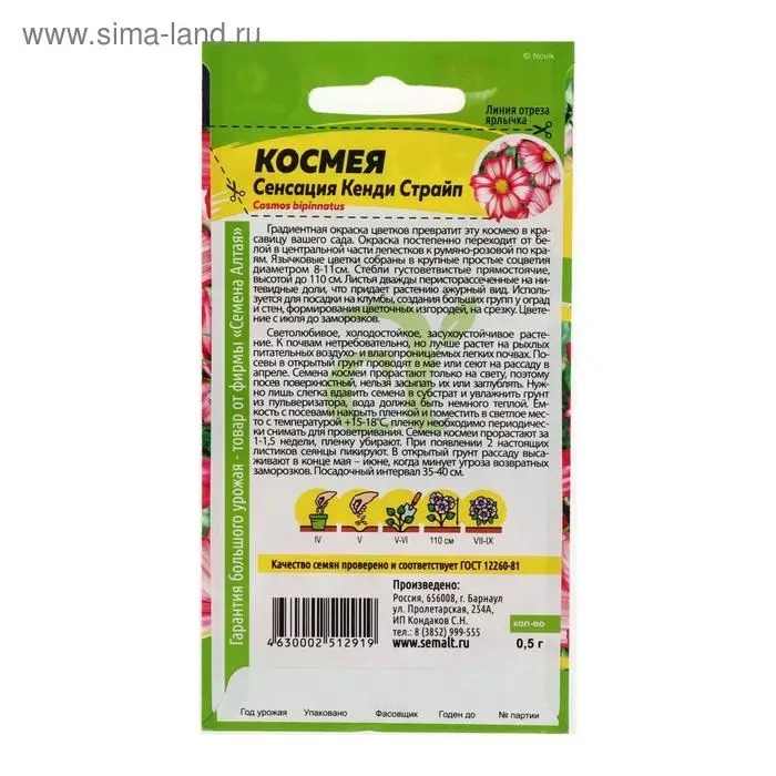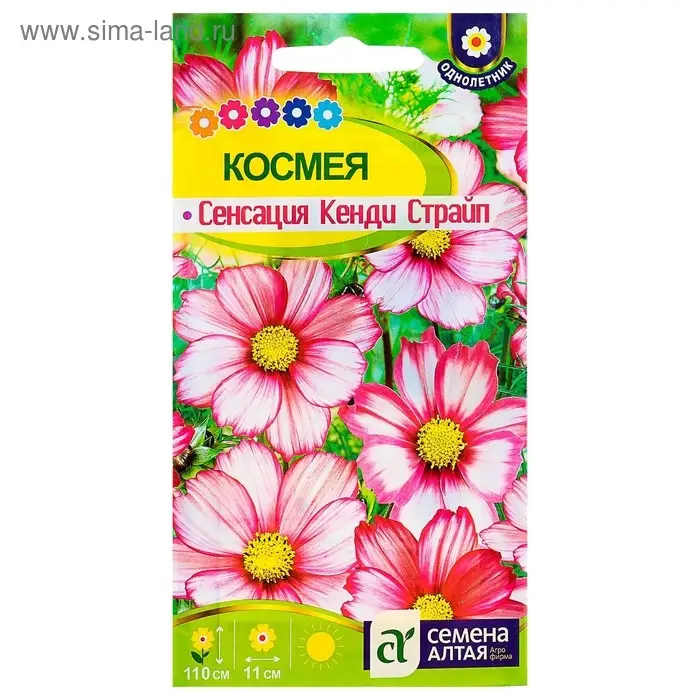 Семена цветов Космея "Сенсация" Кенди Страйп, О, ц/п, 0,5 г