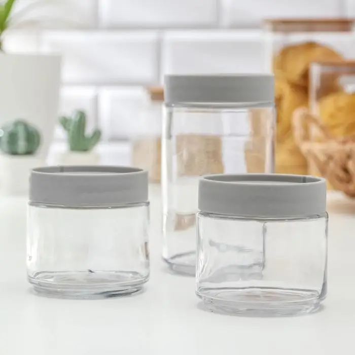 Банки стеклянные для хранения сыпучих продуктов «Модерн», 3 предмета: 320/320/700 мл, пластиковая крышка, цвет серый