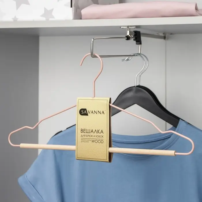 Вешалка для брюк и юбок SAVANNA Wood, 36×21,5×1,1 см, многоуровневая, цвет розовый