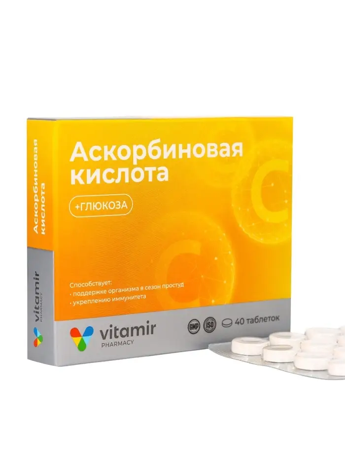 Аскорбиновая кислота ВИТАМИР с глюкозой, без ароматизатора, 40 таблеток