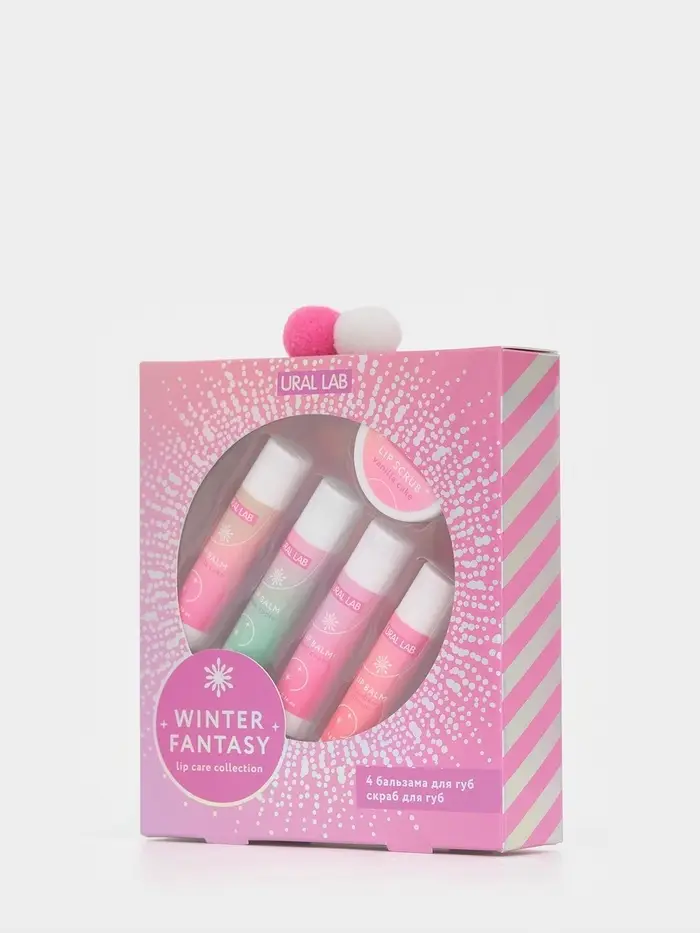 Подарочный набор новогодний Winter Fantasy, 4 бальзама и скраб для губ, URAL LAB