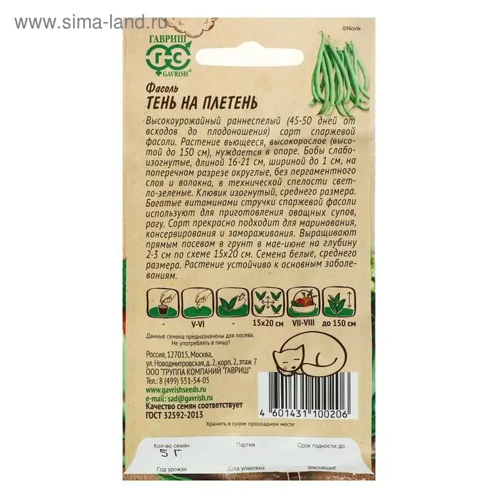 Семена Фасоль "Тень на плетень", ц/п, серия Ленивый огород, 5 г