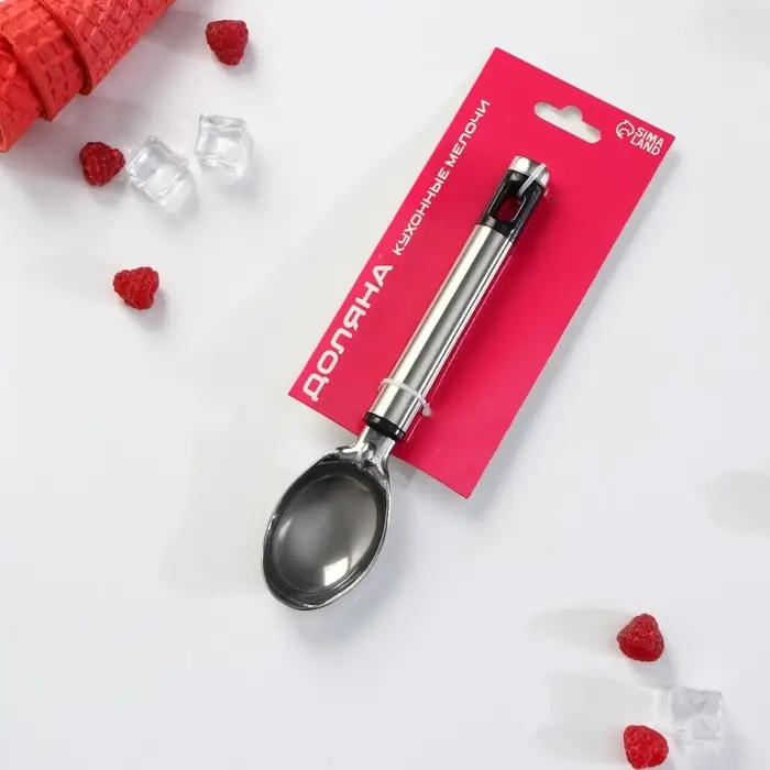- Специальный прибор из нержавеющей стали позволяет удобно черпать замороженную массу и выкладывать ее аккуратными шарами.