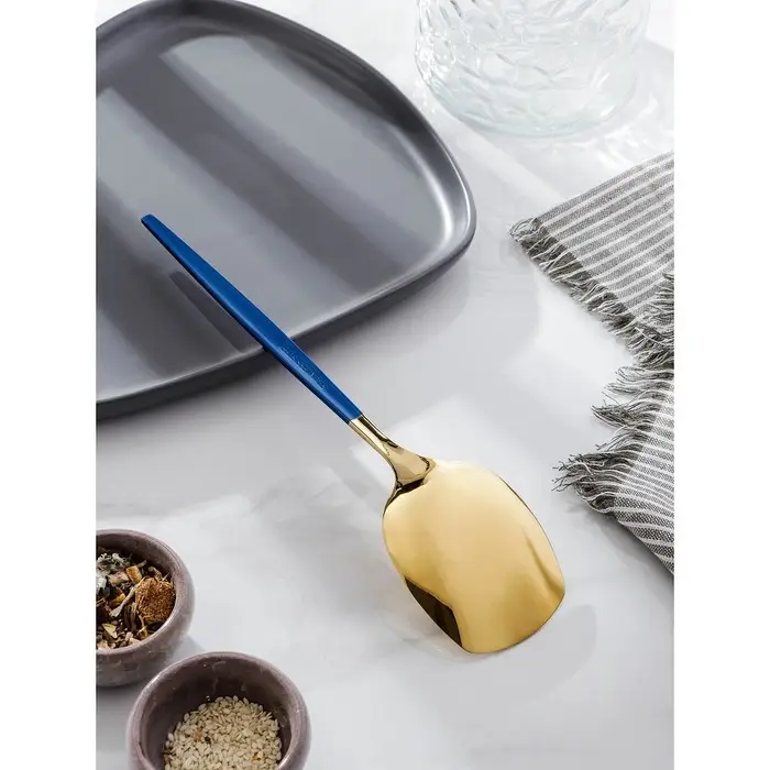Лопатка из нержавеющей стали Magistro «Грэйс», длина 26 см, цвет ручки голубой, цвет головы золотой