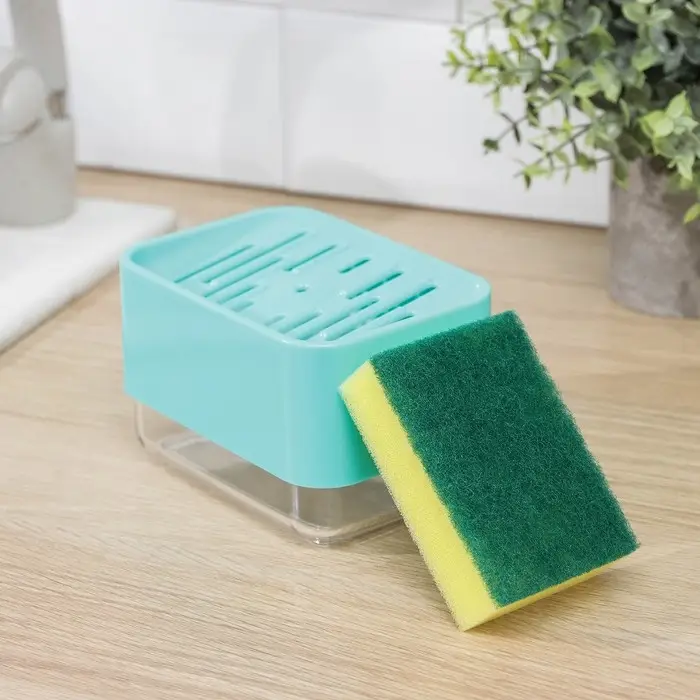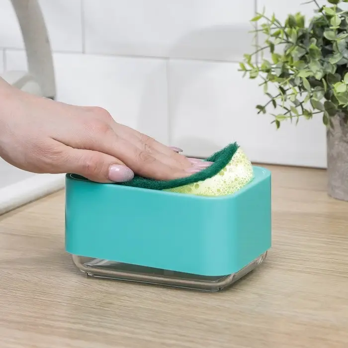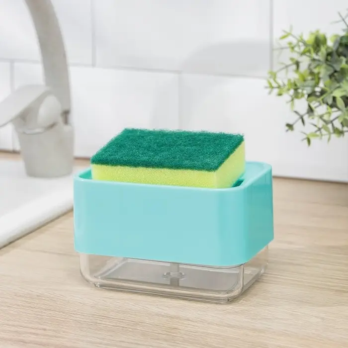 Дозатор для моющего средства с подставкой для губки, 250 мл, губка в комплекте, цвет бирюзовый