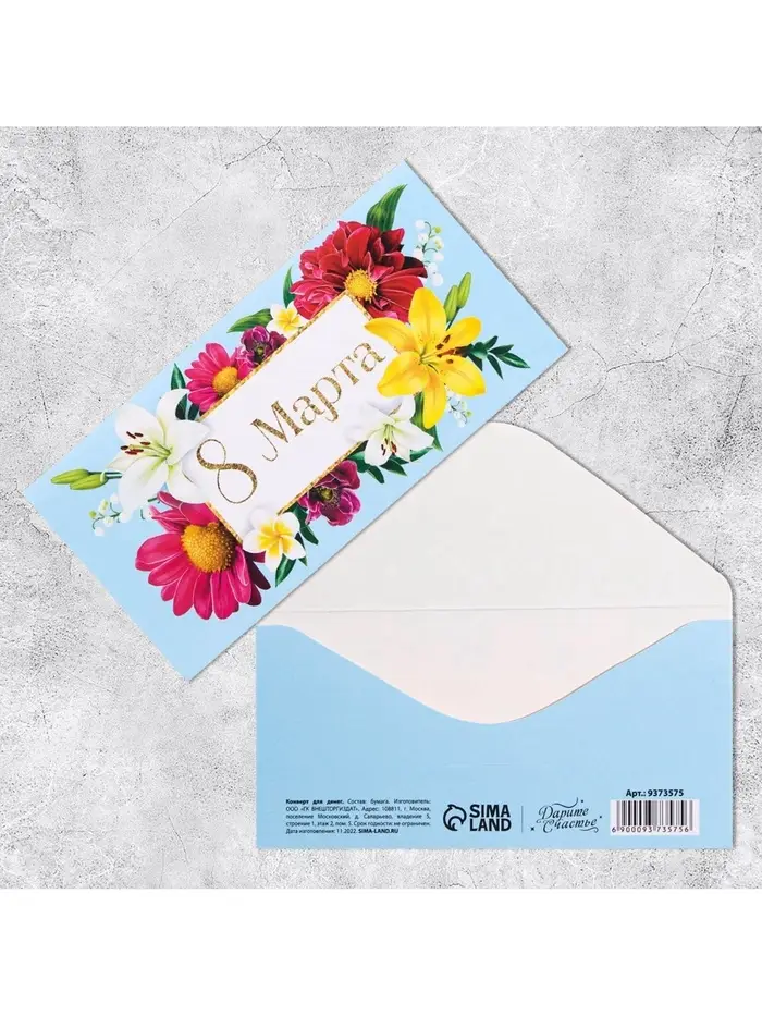 Конверт для денег «8 марта», цветы, 16.5 х 8 см