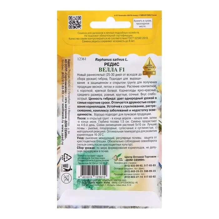Новый раннеспелый (25-30 дней от всходов до сбора урожая) гибрид. Подходит для выращивания в защищенном и открытом грунте для получения продукции весной, летом и осенью. Растение компактное, с короткой, крепкой ботвой. Корнеплоды ярко-красные, среднего размера, ровные, круглые, cочные. Вкус слабоострый. Ценность гибрида: дает однородный урожай в самые короткие сроки. Отличается дружностью созревания корнеплодов. Устойчив к стрелкованию, растрескиванию, комплексу заболеваний и недостатку освещенности. Хорошо подходит для пучковой продукции. Посев: в открытый грунт - в конце апреля - начале мая, затем -в конце июля. Глубина посева 1,5-2,0 см. Схема размещения растений 5х10 см. Лучшие почвы - рыхлые, плодородные, супесчаные и суглинистые, с нейтральной реакцией. Оптимальная температура для развития корнеплодов 16-20ºС.Уход: рыхление междурядий, регулярные поливы, защита от крестоцветной блошки. Обязательно соблюдение севооборота (нельзя сеять после крестоцветных культур).Сбор урожая: по мере формирования корнеплодов, не допуская передержки в почве.