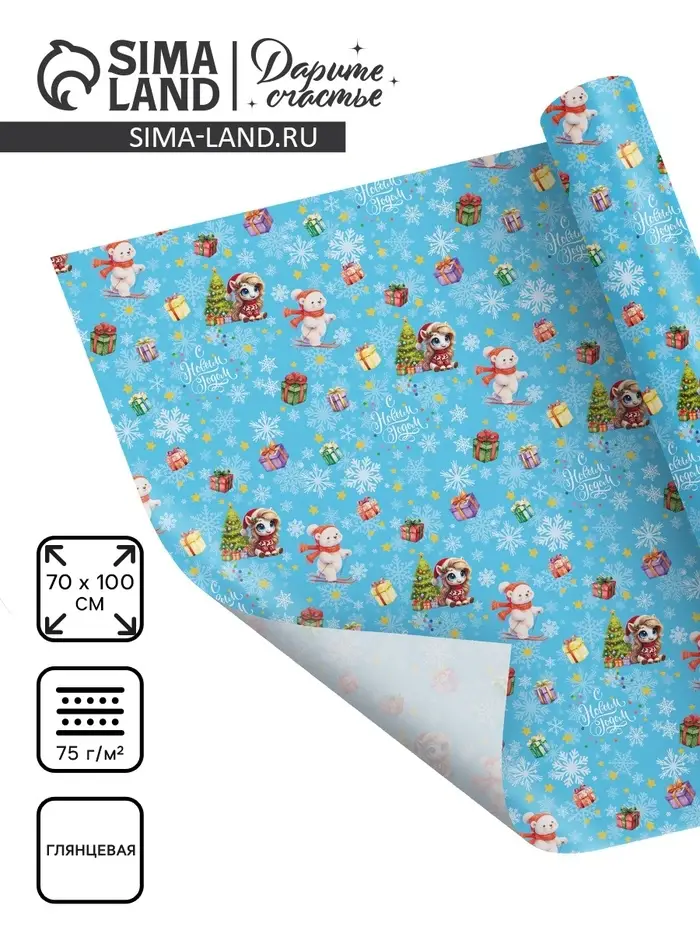 Бумага упаковочная глянцевая «С Новым годом», 70×100 см
