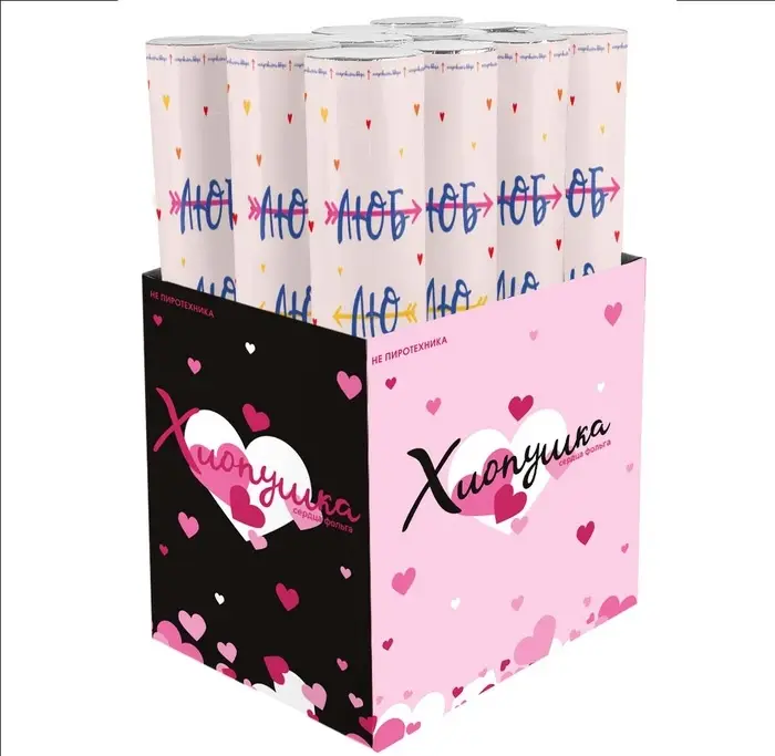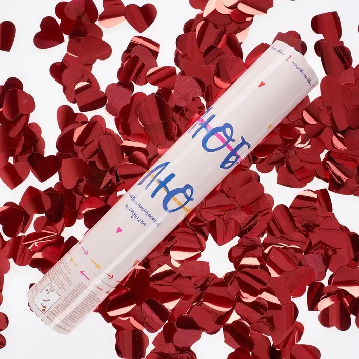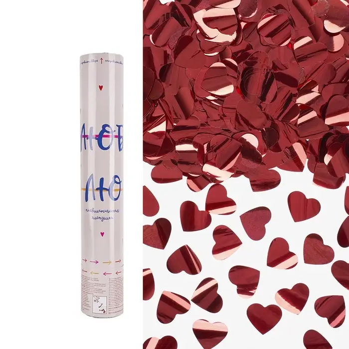 Хлопушка пневматическая "Люблю, Сердца" фольга, красный, металлик" (12/30 см)