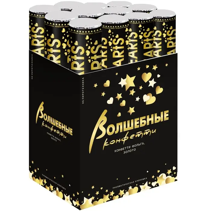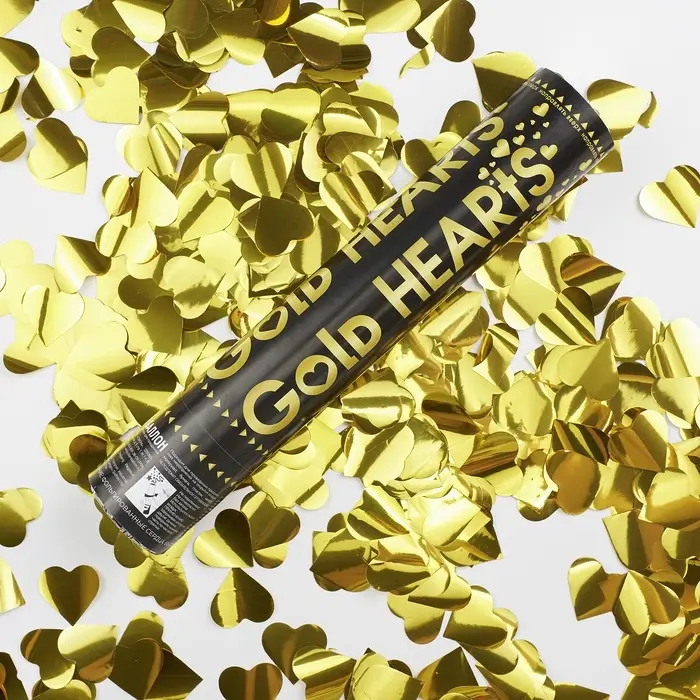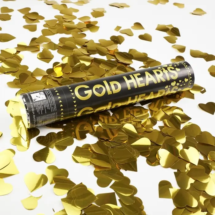 Хлопушка пневматическая "Сердца" фольга, золото, металлик, (12/30 см)