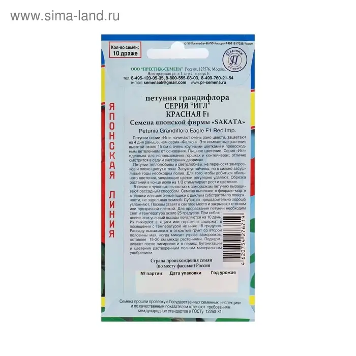 Петунии серии ""Игл"" начинают очень рано цвести, зацветают на 4 дня раньше, чем серия ""Фалкон"". Это компактные растения высотой около 15см с очень крупными цветками и превосходным ветвлением от основания. Пышное цветение. Серия ""Игл"" идеальна для использования горшках и контейнерах; отлично смотрится в саду и внутренних двориках. Петунии теплолюбивы и светолюбивы, не переносят заморозков и плохо цветут в тени. Засухоустойчивы, но в сильно засушливые годы необходим полив. Для того чтобы добиться обильного цветения, увядающие цветки регулярно удаляют. Обрезка растений в конце июля на 1/3 стимулирует рост и цветение.