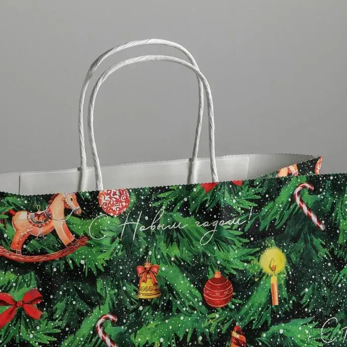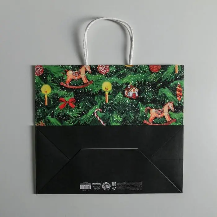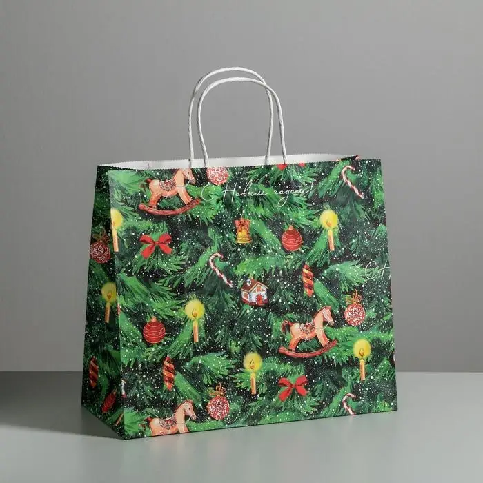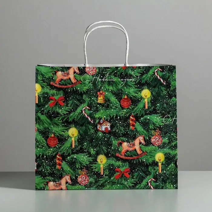 Пакет подарочный новогодний крафтовый «Новогодняя ёлочка», 32 х 28 х 15 см