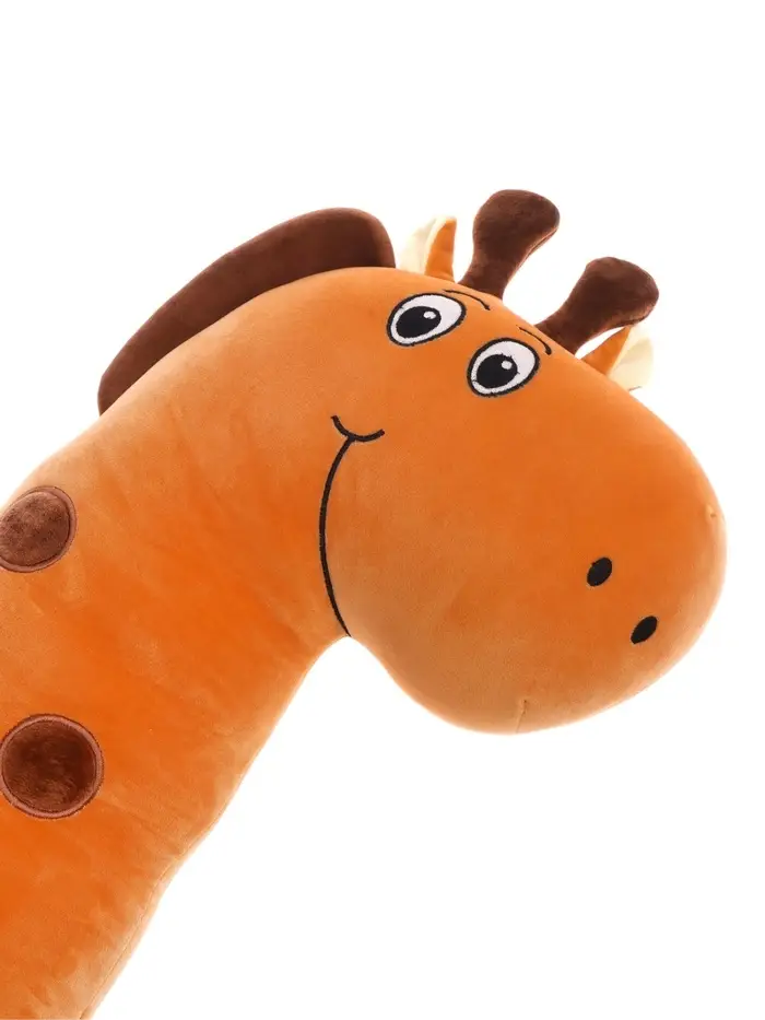 - Игрушка выполнена в виде очаровательного жирафа, который сочетает в себе функции игрушки и подушки.