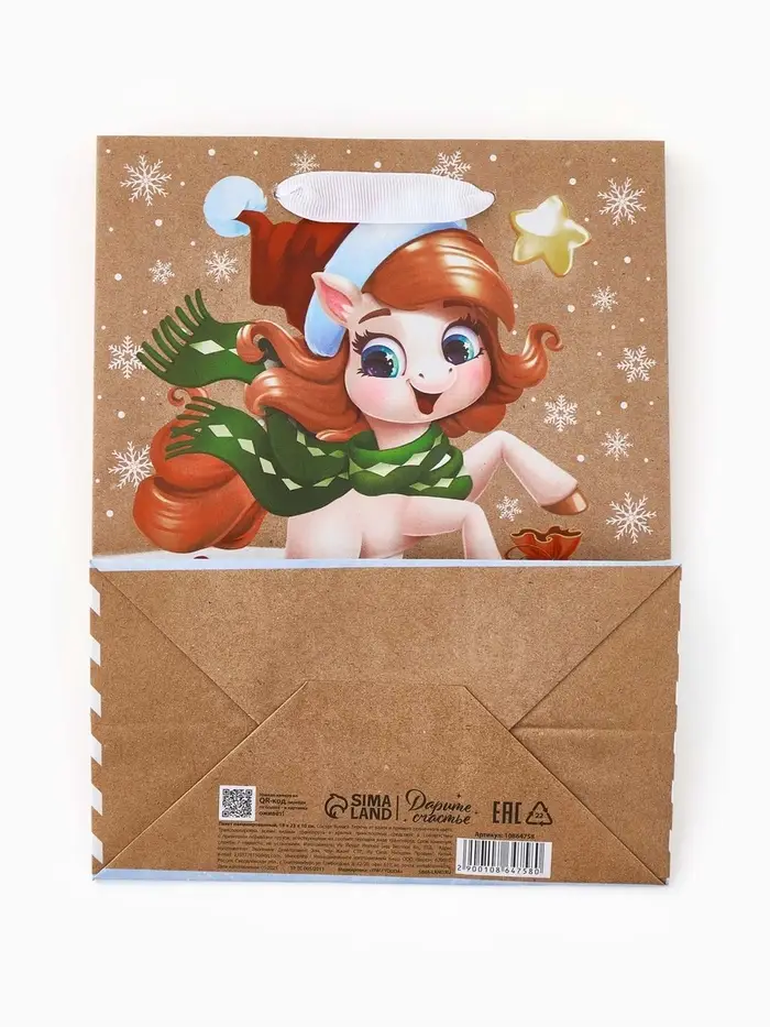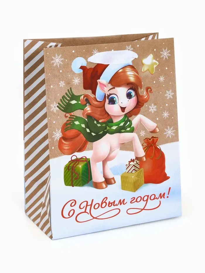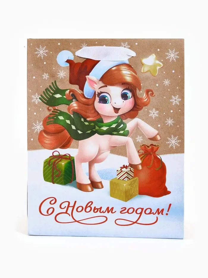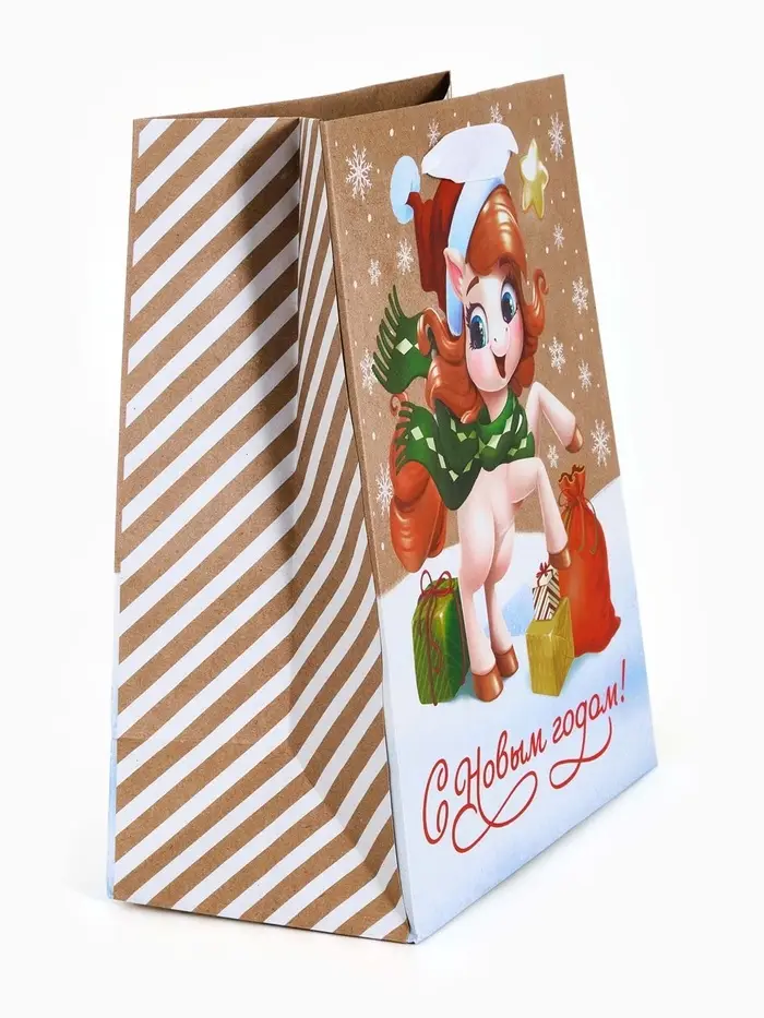 Пакет подарочный крафтовый вертикальный «С Новым годом», MS 18×23×10 см