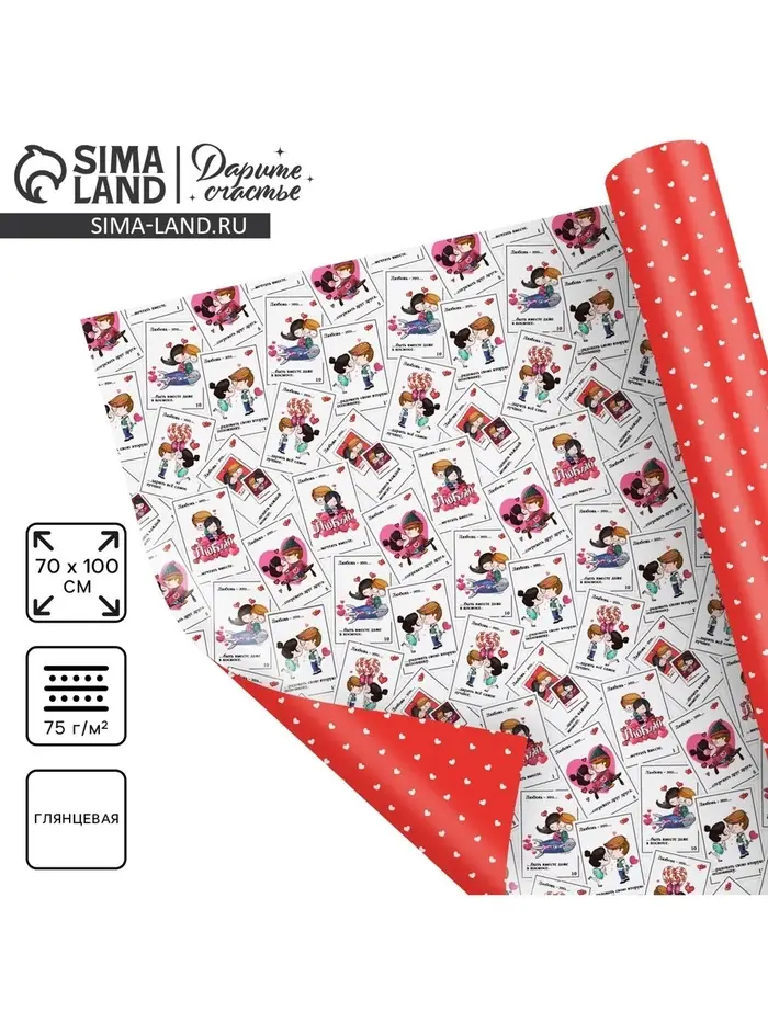 Бумага упаковочная глянцевая двухсторонняя «Любовь это...», 70 х 100 см