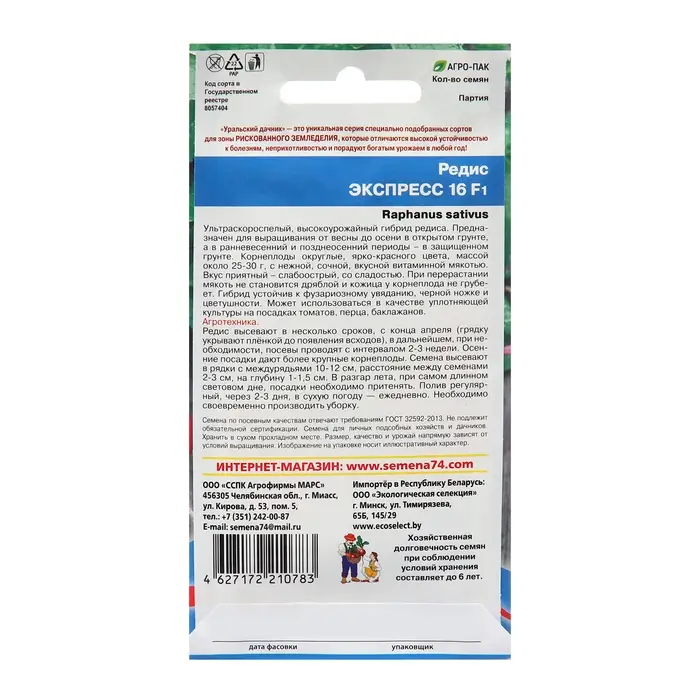 Семена Редис "Экспресс 16", 2 г