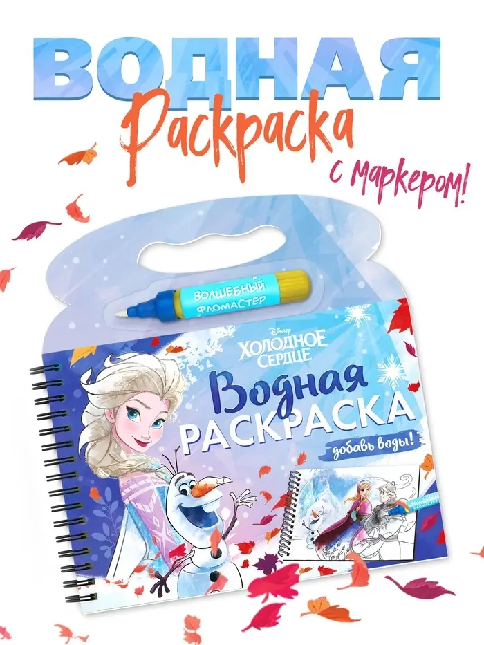 Раскраска водная многоразовая «Добавь воды», с маркером, Холодное сердце