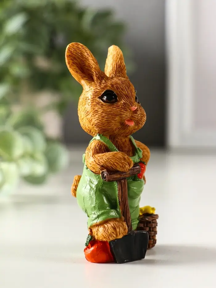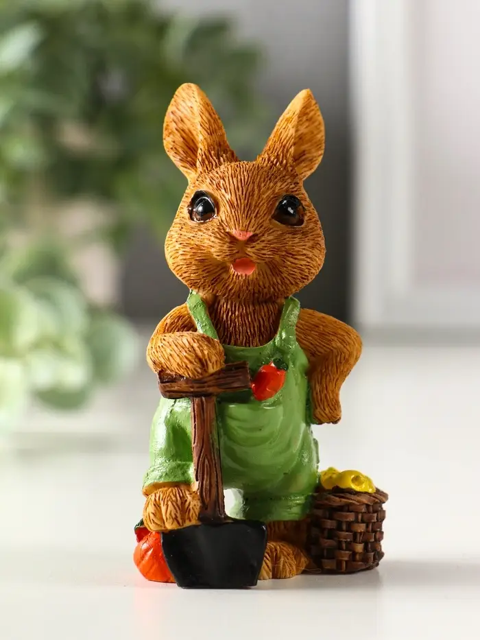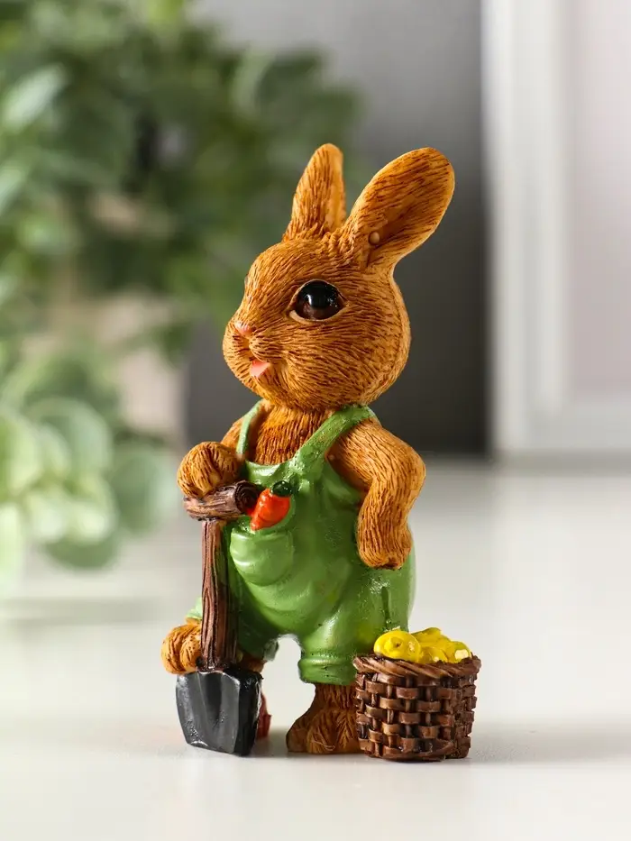 Сувенир полистоун "Зайчик-огородник с корзиной с урожаем" МИКС 4,8х3,2х9 см