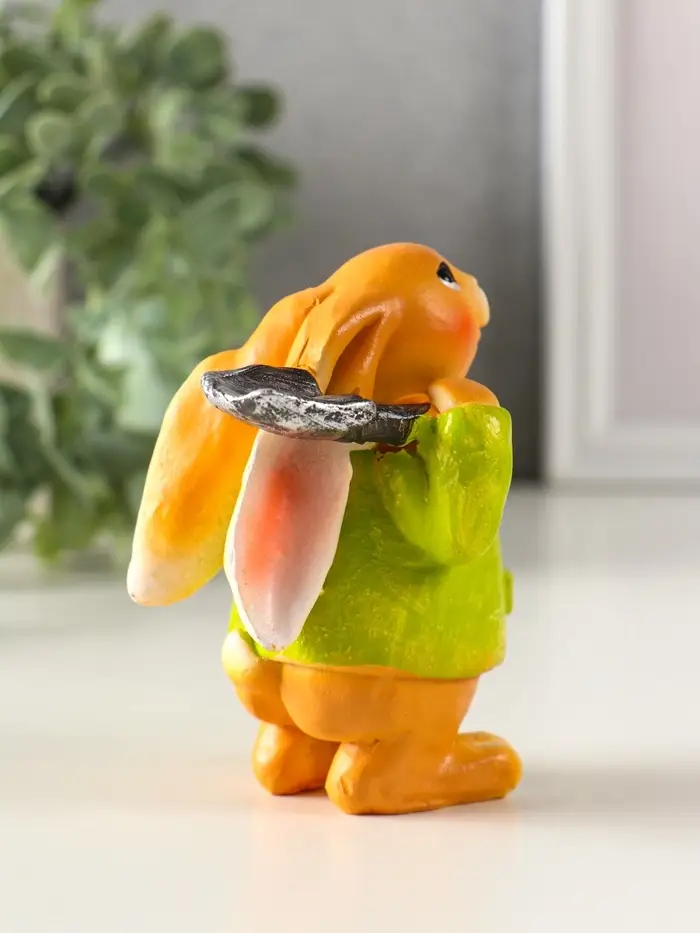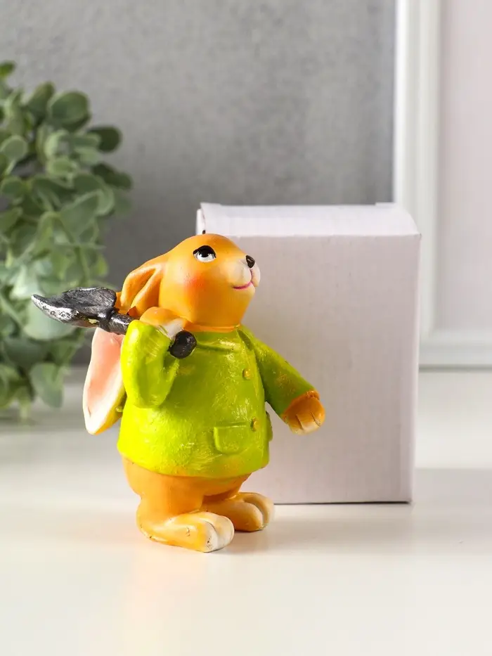 Сувенир полистоун "Зайчик с лопатой, в зелёном пальто" 6х7,5х9,5 см