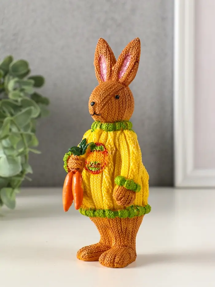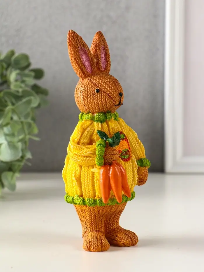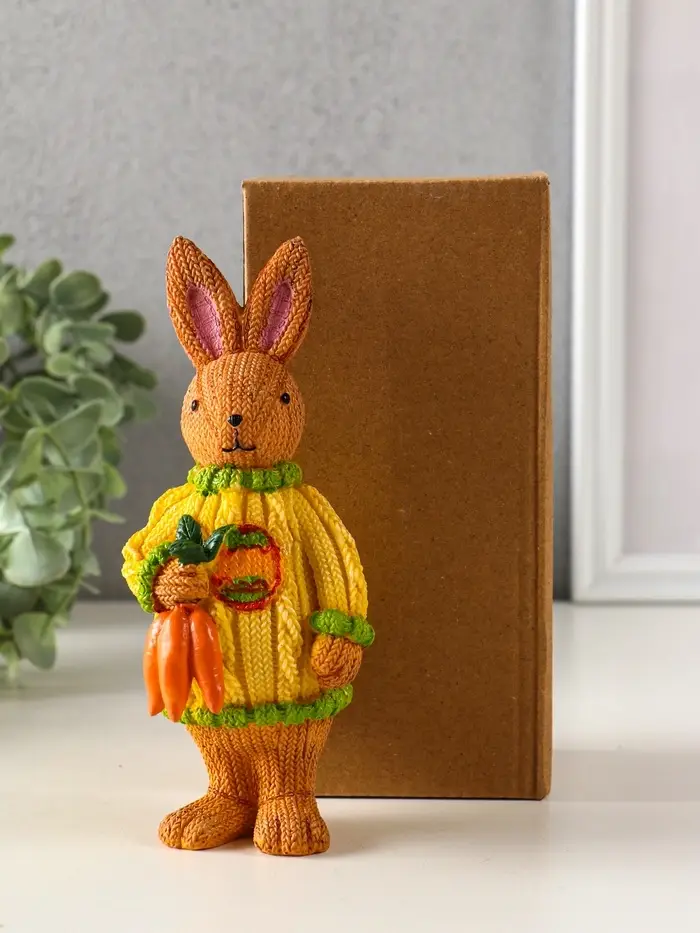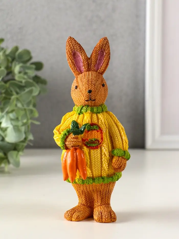 Сувенир полистоун "Заяц в вязанном свитере с охапкой моркови" 6,5х6,5х15,5 см
