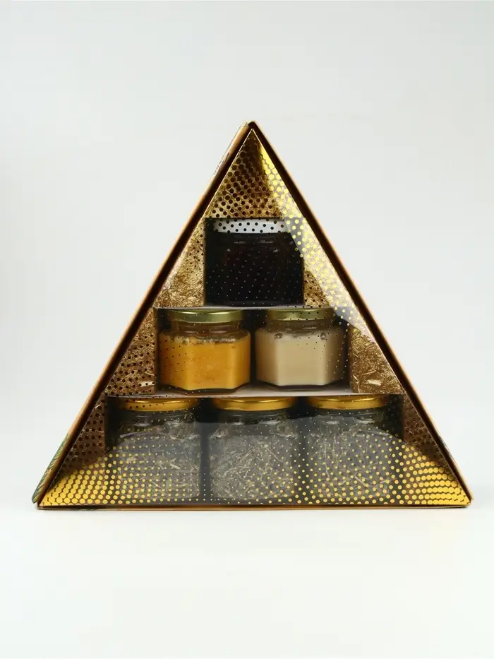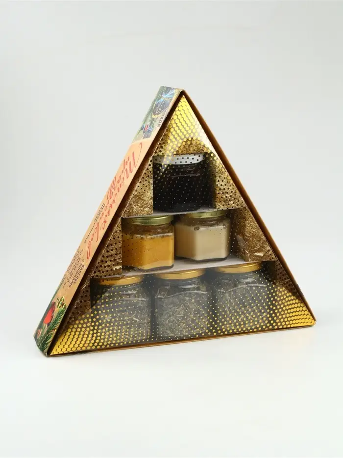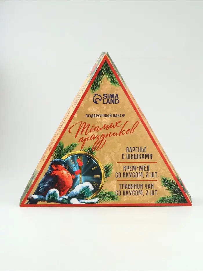 Подарочный набор новогодний «Советский» варенье с шишками, крем-мед 2 шт, чай в банке 3 шт 1087734
